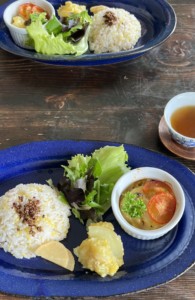 スープと雑穀入りご飯、付け合わせ例を合わせたミニプレートを試食していただきます。